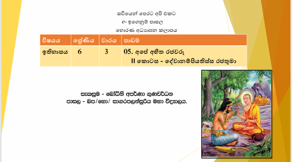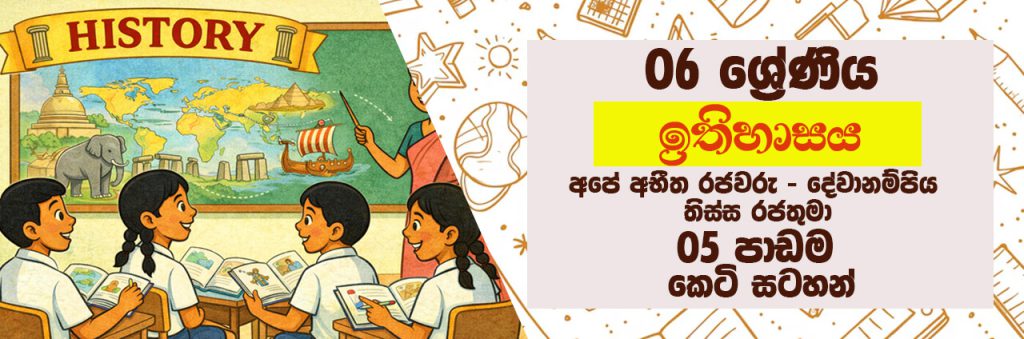 Download note for grade 06 History Lesson 05, Ape Abitha Rajawaru – Dewanampiyathissa Rajathuma in Sinhala Medium. Ape Abitha Rajawaru – Dewanampiyathissa Rajathuma lesson also includes lesson evaluation tests and answers. Download using the Link Below. It’s free to download.