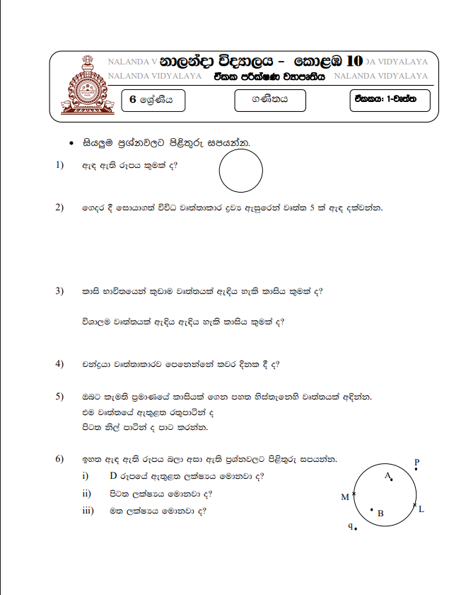 Download Grade 06 Mathematics | Revision Book – 2020. Contain 25 question papers issued by Nalanda college for each unit. Download using the Link Below. It’s free to download.