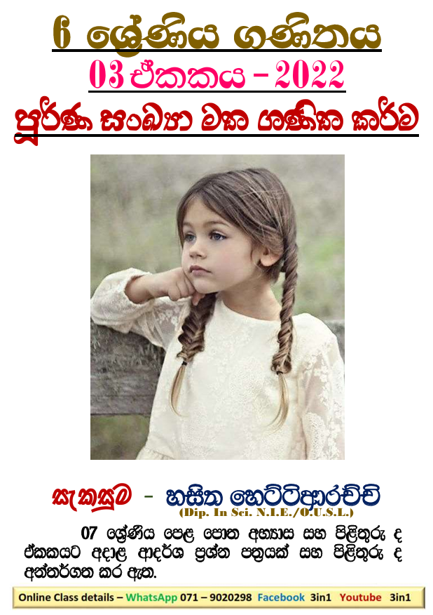 Grade 06 Mathematics Unit 03 Purna Sankaya Matha Ganitha Karma lesson book Questions & Answers book