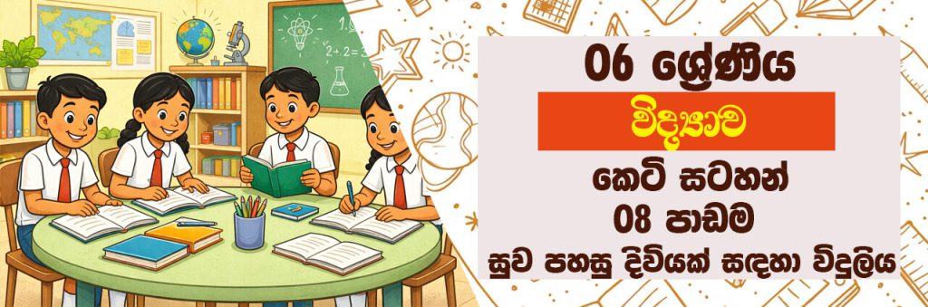 Short note for grade 06 Science Lesson 08, Suwapahasu Diviyak Sandaha Viduliya in Sinhala Medium. Suwapahasu Diviyak Sandaha Viduliya also includes lesson evaluation tests and answers. Download using the Link Below. It’s free to download.