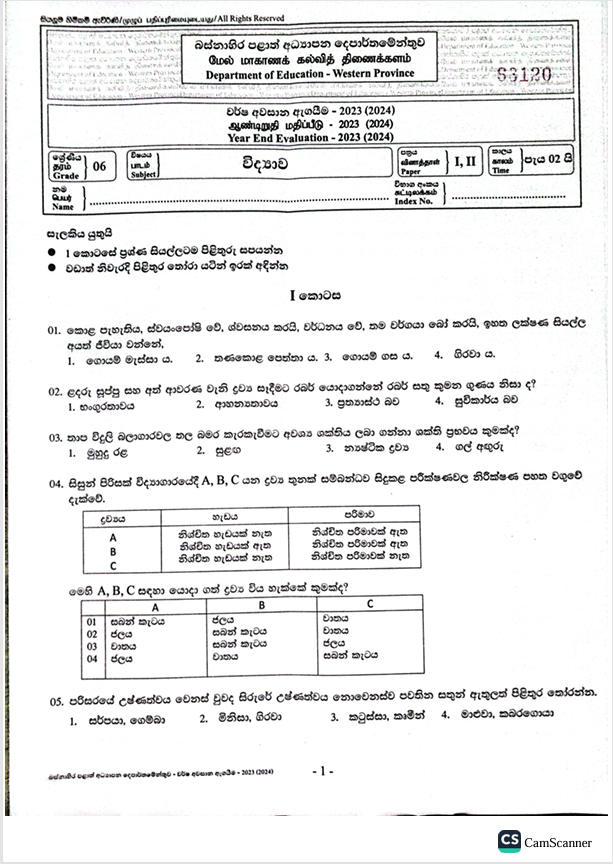 Download 2023(2024) Western Province Grade 10 Science 3rd term test paper in Sinhala medium. You can download the Western Province term test paper as a PDF from the link below.