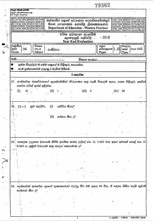 Download Western Province Grade 06 Mathematics Third term paper 2018 in Sinhala Medium. All Sinhala Medium students can download Grade 06 Mathematics past paper using the links below. It’s free to download.