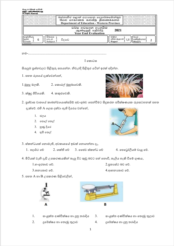 Download Western Province Grade 06 Science Third term paper 2021 in Sinhala Medium. All Sinhala Medium students can download Grade 06 Science past paper using the links below. It’s free to download.